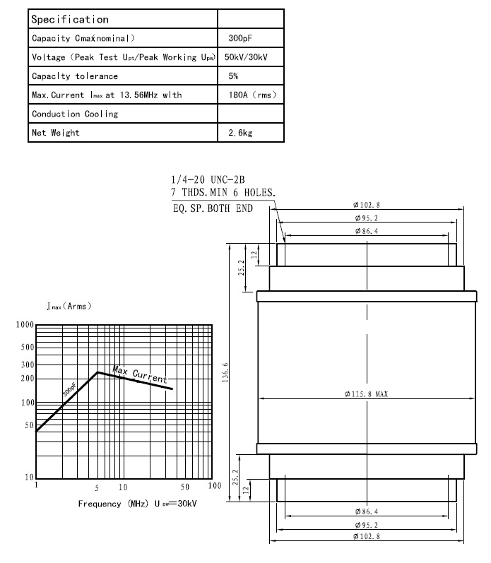 CKT300/42/240固定陶瓷高压真空电容器采用陶瓷外壳、真空介质、具有耐压高、体积小、Q值高、性能稳定可靠价格低廉等特点,广泛用于感应加热、介质加热、通讯、广播等设备。