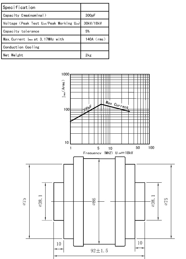 CKT300/21/140固定陶瓷高压真空电容器采用陶瓷外壳、真空介质、具有耐压高、体积小、Q值高、性能稳定可靠价格低廉等特点,广泛用于感应加热、介质加热、通讯、广播等设备。
