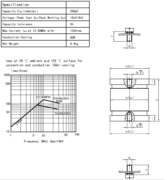 CKT350/10/132固定陶瓷高压真空电容器采用陶瓷外壳、真空介质、具有耐压高、体积小、Q值高、性能稳定可靠价格低廉等特点,广泛用于感应加热、介质加热、通讯、广播等设备