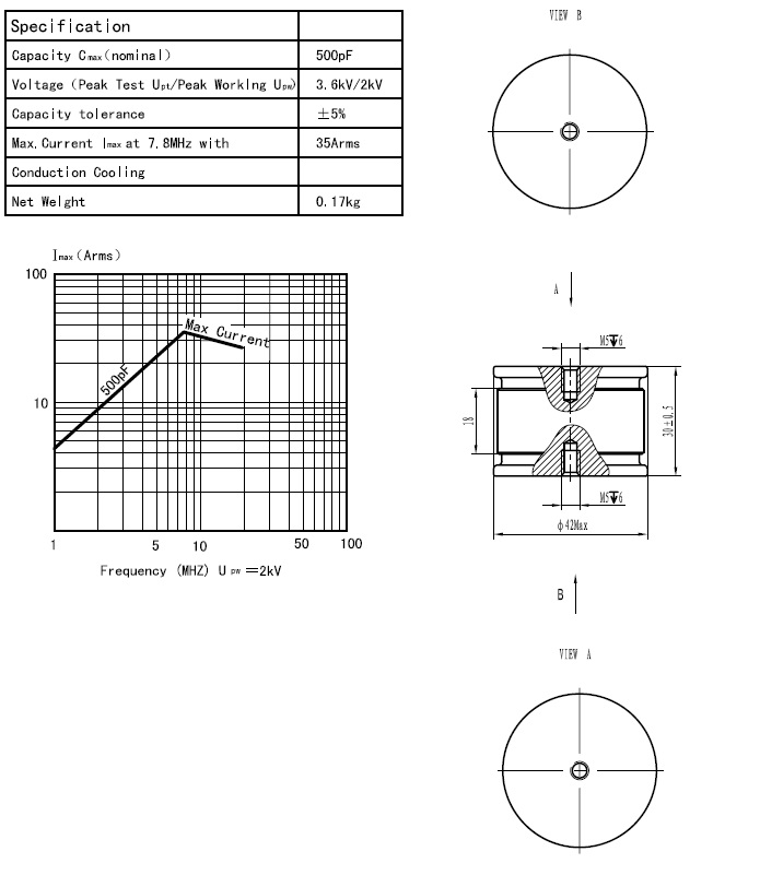 CKT500/2.5/35固定陶瓷高压真空电容器采用陶瓷外壳、真空介质、具有耐压高、体积小、Q值高、性能稳定可靠价格低廉等特点,广泛用于感应加热、介质加热、通讯、广播等设备。