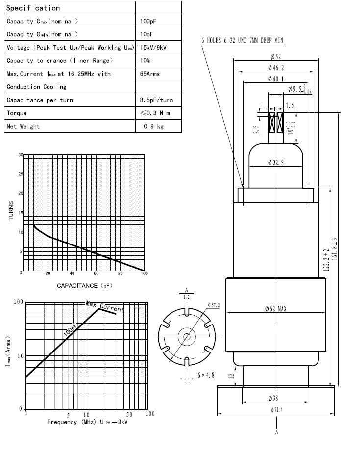 产品名称:可变真空电容器CKTB100/10/65(I)