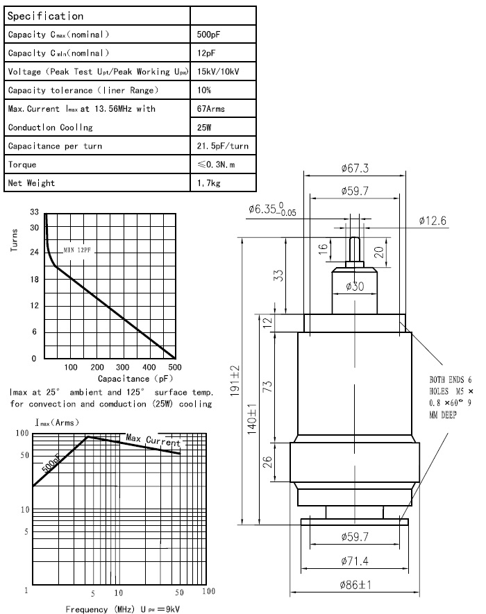 可变真空电容器CKTB500/10/67(Ⅲ)