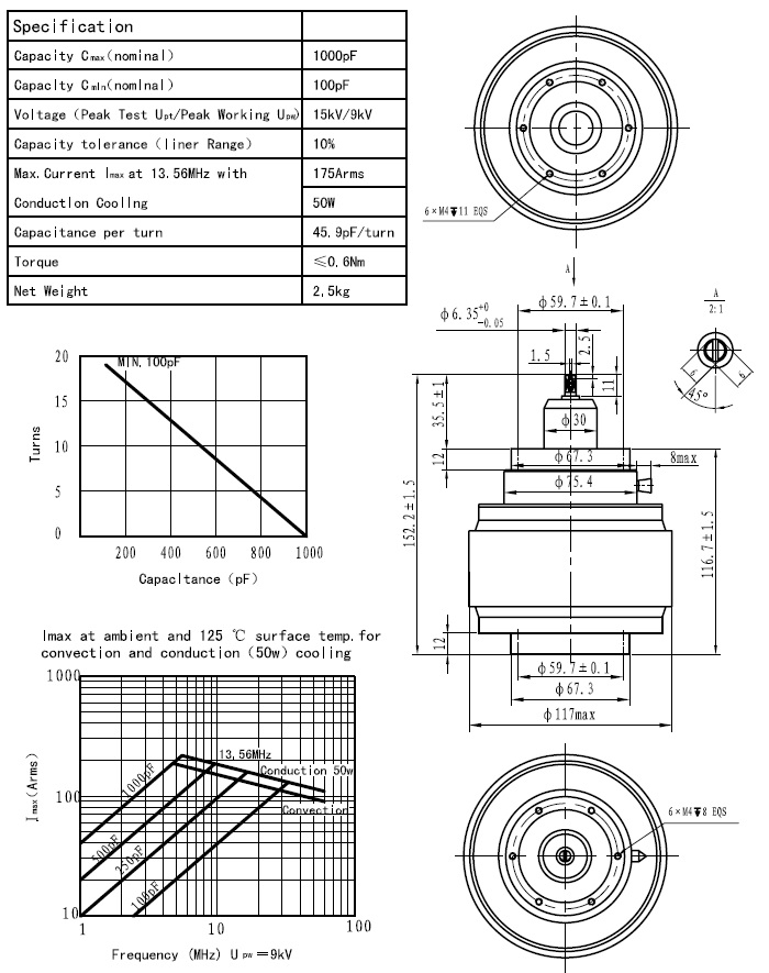 产品名称:可变真空电容器CKTB1000/10.5/175