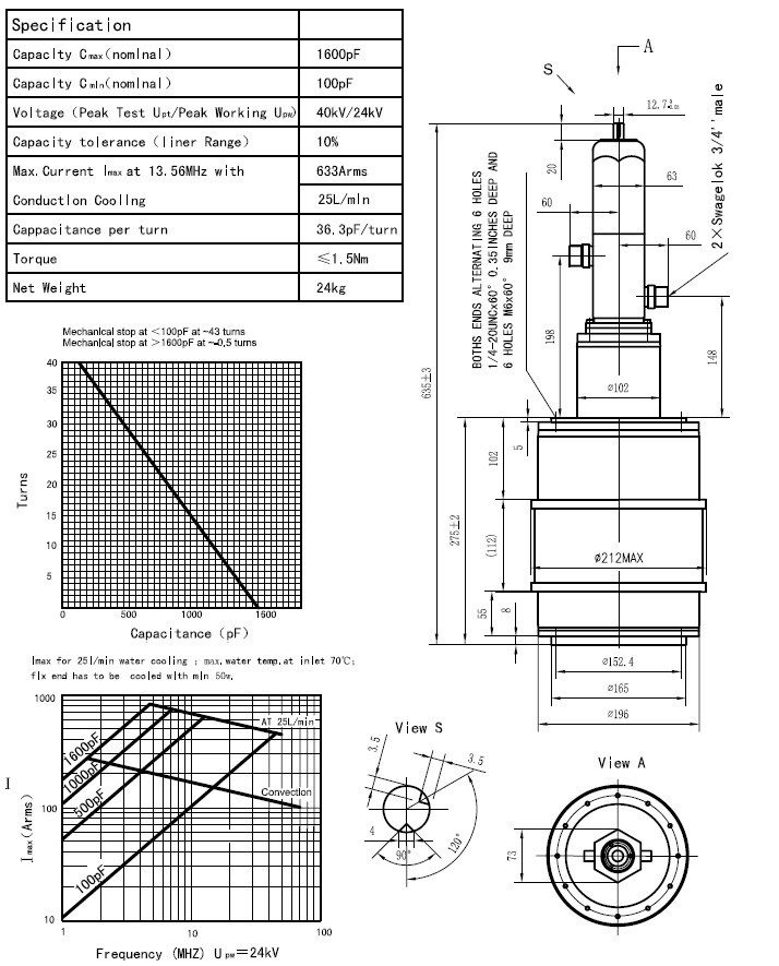 CKTBS1600/28/790可变陶瓷高压真空电容器采用陶瓷外壳、真空介质、具有耐压高、体积小、Q值高、性能稳定可靠、价格低廉等特点,广泛用于感应加热、介质加热、通讯、广播等设备。