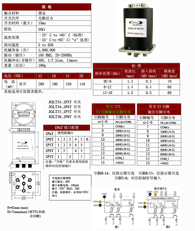 产品名称:射频同轴继电器JGLT3-S18-常开