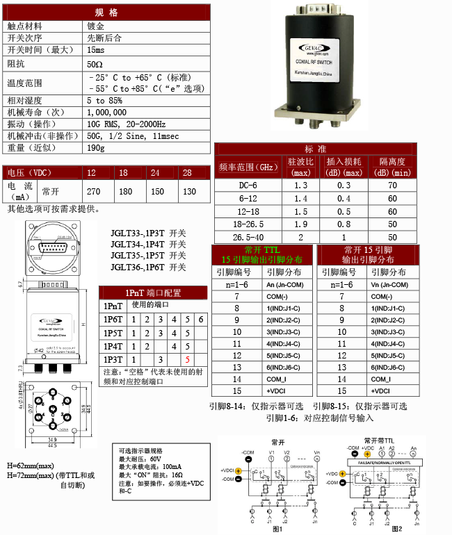 产品名称:射频同轴继电器JGLT3-K40-常开