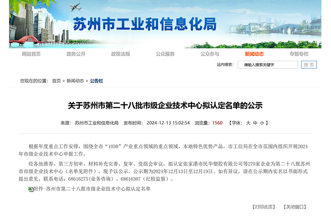 2024年底,围绕全市“1030”产业重点领域的重点领域、本地特色优势产品,市工信局在全市范围内组织开展2024年市级企业技术中心申报工作,于近日进行公示,国力股份子公司——昆山瑞普电气有限公司位列其中,顺利通过市级企业技术中心的认定。
