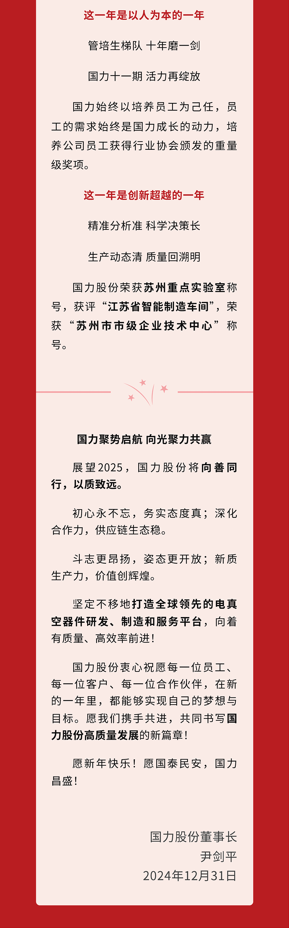 新年寄语 | 国力股份董事长尹剑平:向善同行,以质致远,共绘高质量发展新篇章